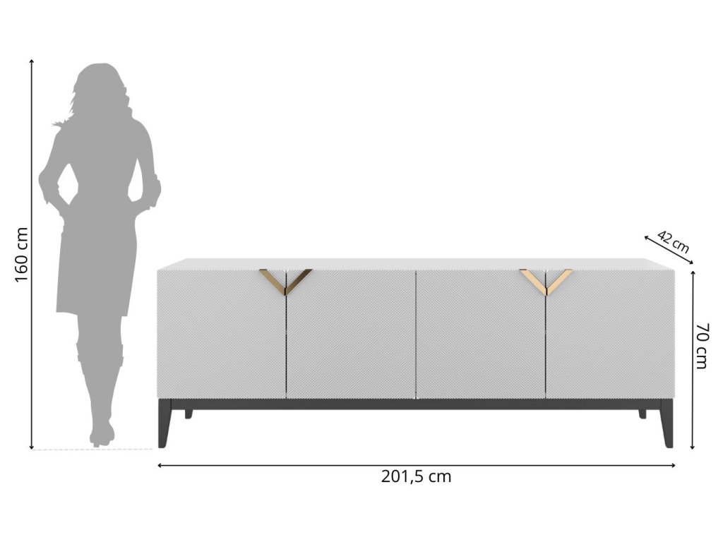 Komoda VARESE NOIR 200 cm – černá/ zlaté úchyty, frézovaná čela