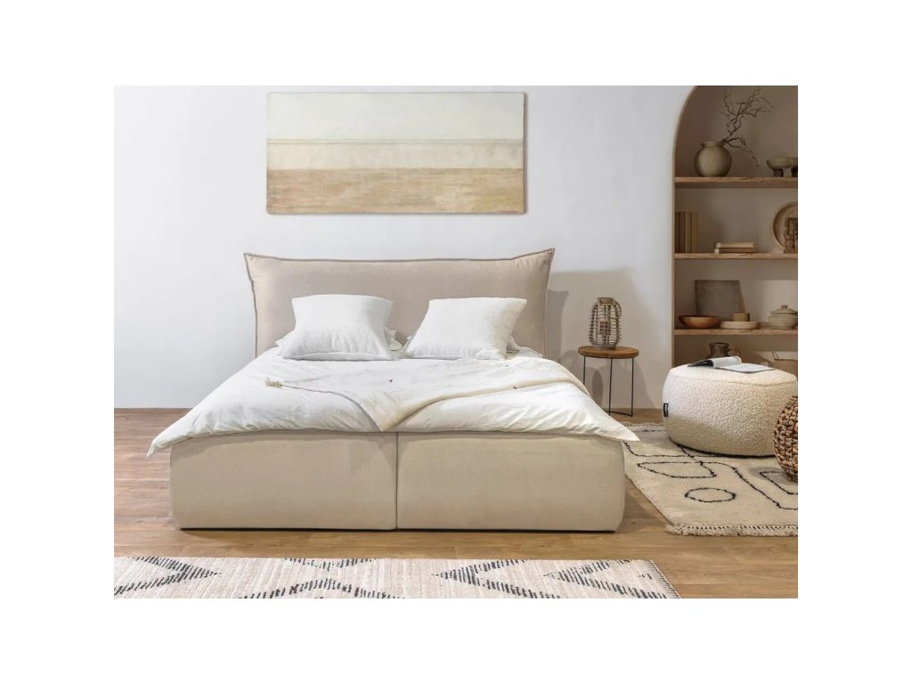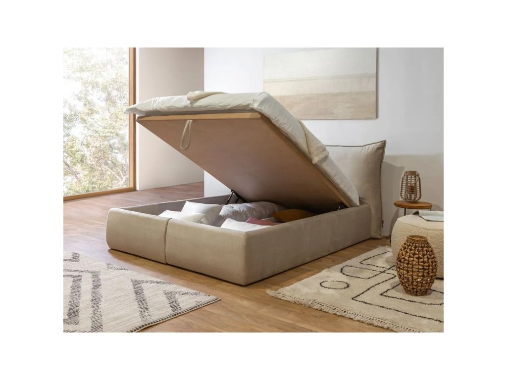 Postel DREAM HOME – béžová čalouněná dvoulůžková 160×200 cm s úložným prostorem a roštem