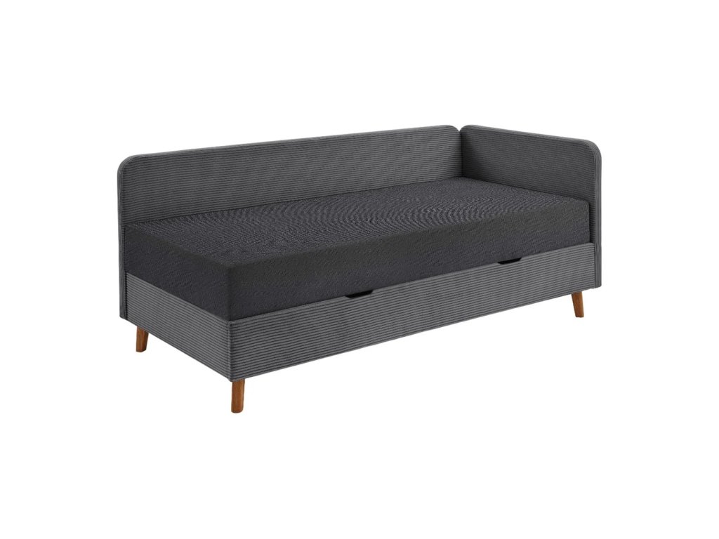 RIVIERA 90 – tmavě šedá čalouněná postel s úložným prostorem a matrací 90×200